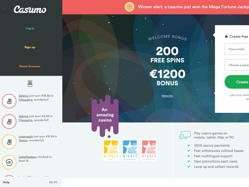 Ce casino en ligne fait usage des meilleures technologies pour assurer de performants services à sa clientèle. Parmi les technologies présentes, vous avez le Flash et le HTML5. La présence de ces deux outils permet au site du Casumo Casino d'être accessible sur toutes les plateformes, et cela, sans téléchargement. Ainsi à travers les navigateurs web de vos appareils mobiles, vous pourrez jouer à vos jeux préférés et aussi profiter des divers bonus et promotions. De plus, sachez que Casumo Casino a lancé son application mobile afin d'aider ses utilisateurs à profiter de meilleures expériences de jeux en ligne canadien. Aussi les jeux mobiles accessibles augmentent de jour en jour. Cette application accessible sur Android et iOS a remporté le prix « EGR Operator Award » du meilleur casino mobile en 2015.